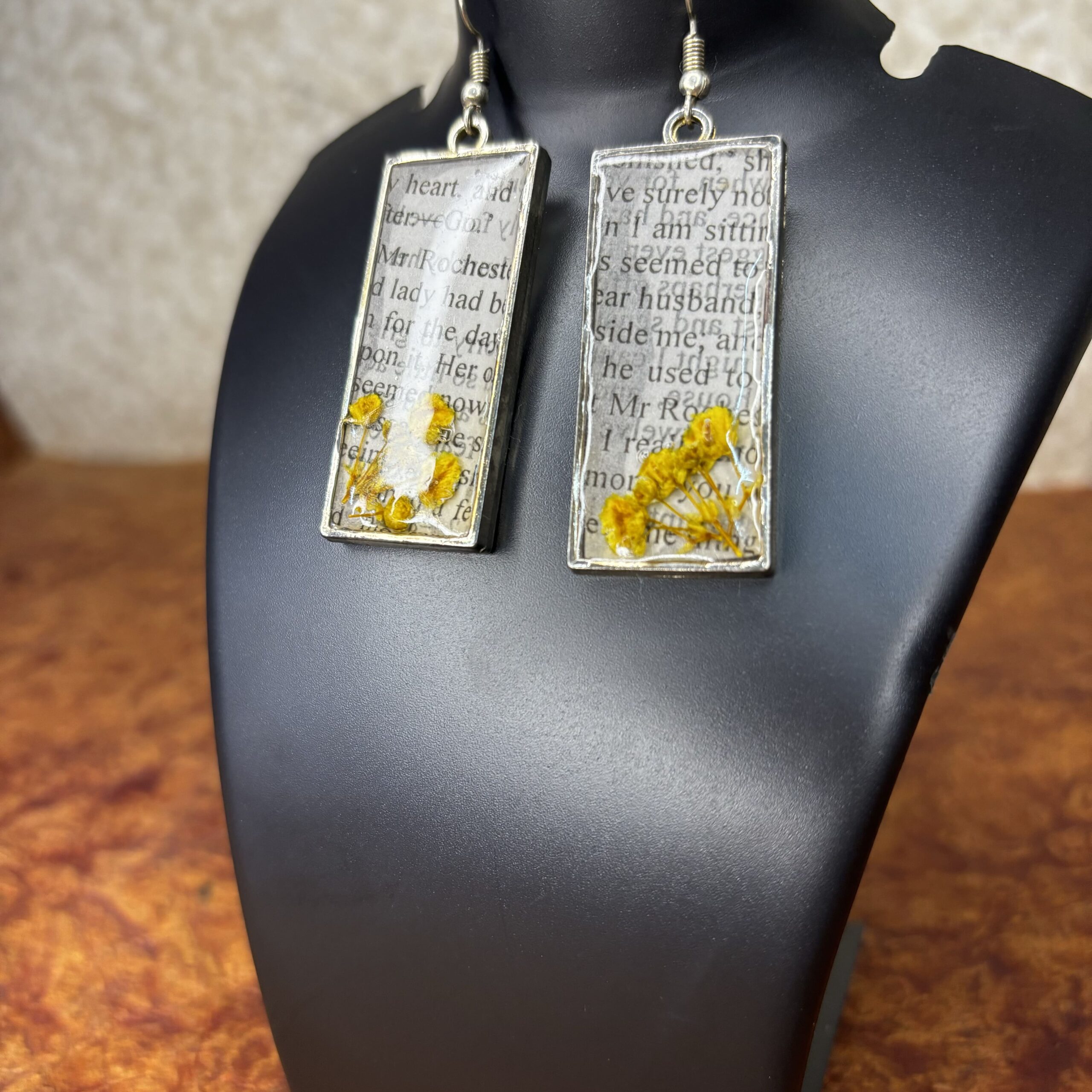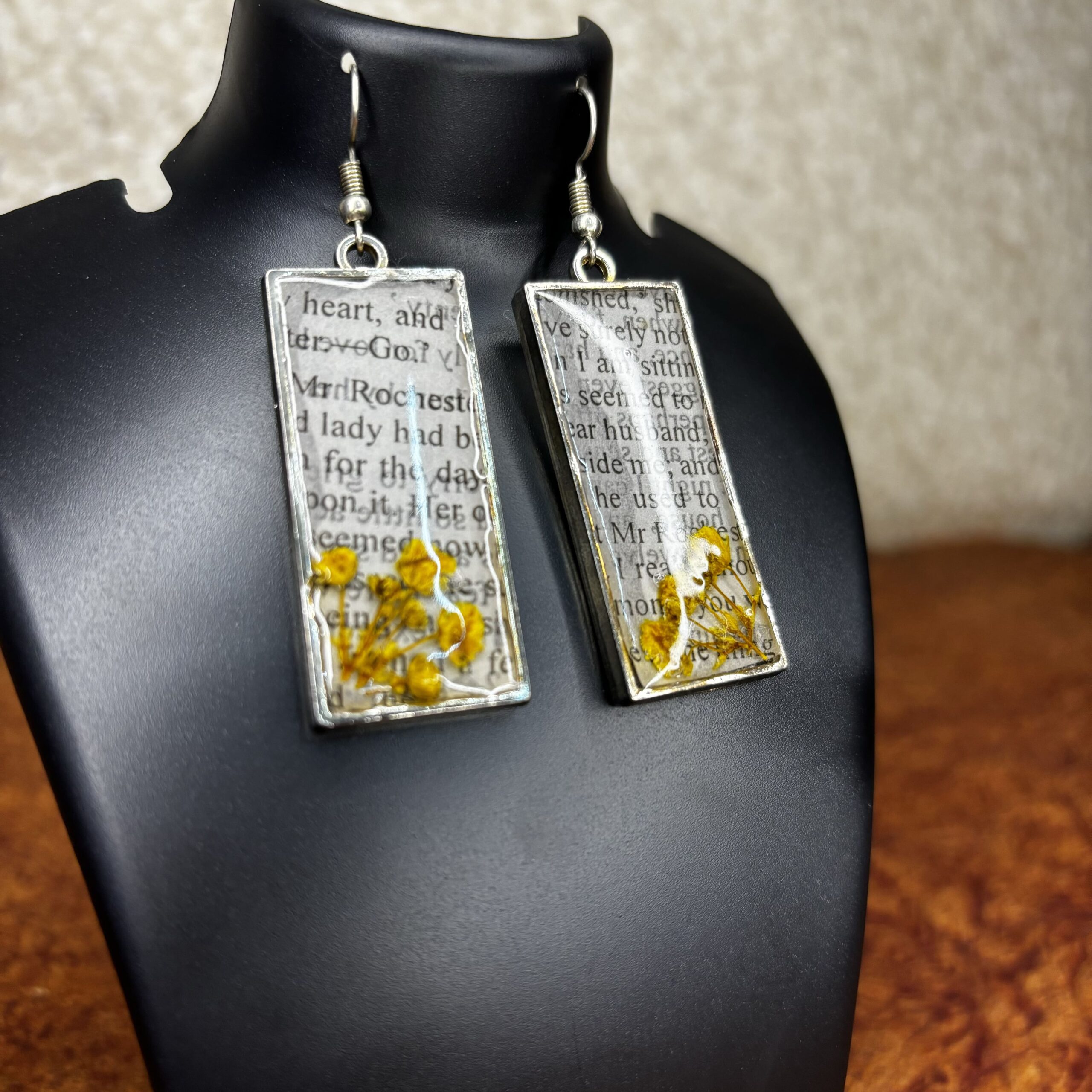 A charming fusion of dried florals and vintage book pages, these resin dangle handmade earrings are perfect for adding a poetic twist to your style. Light, unique, and effortlessly elegant!