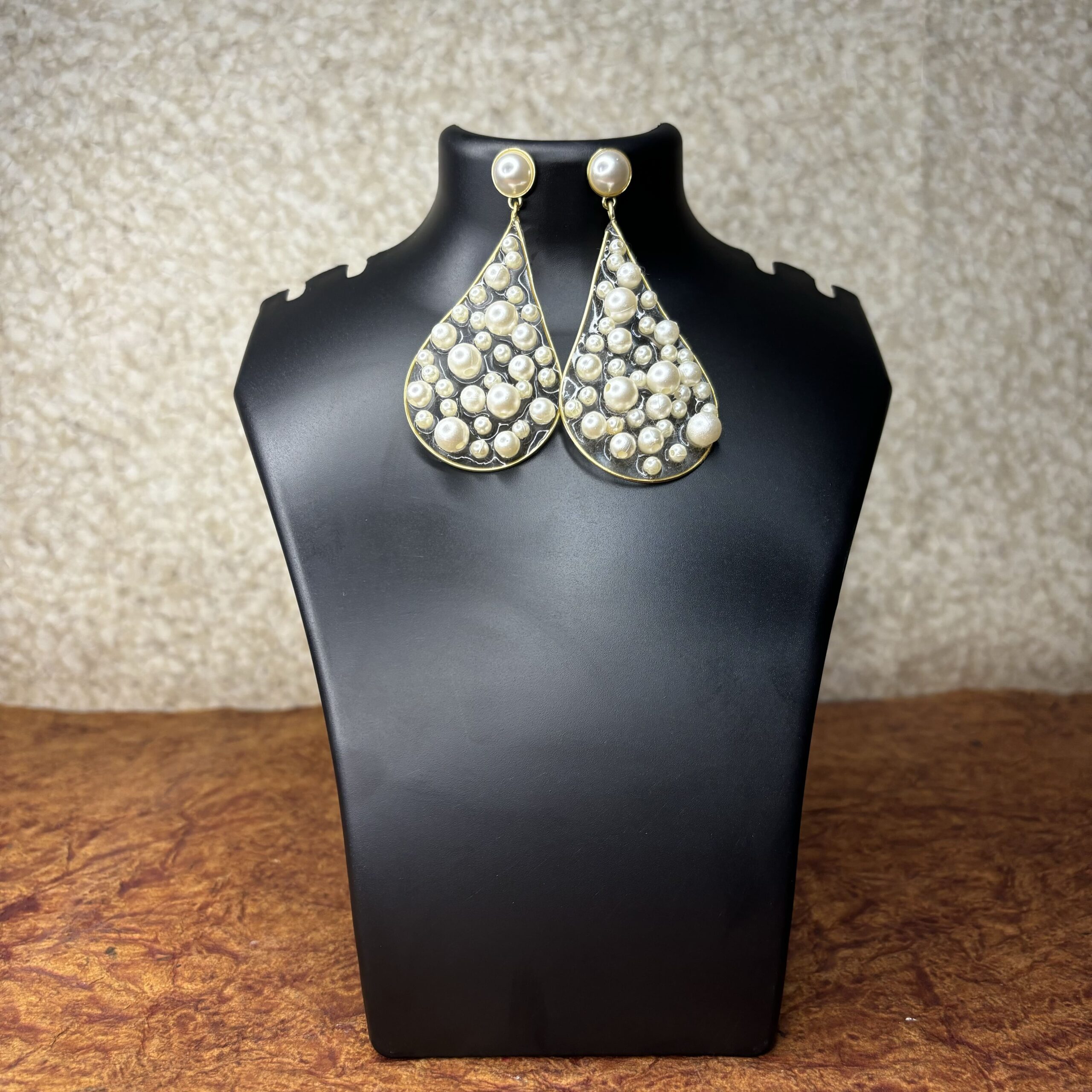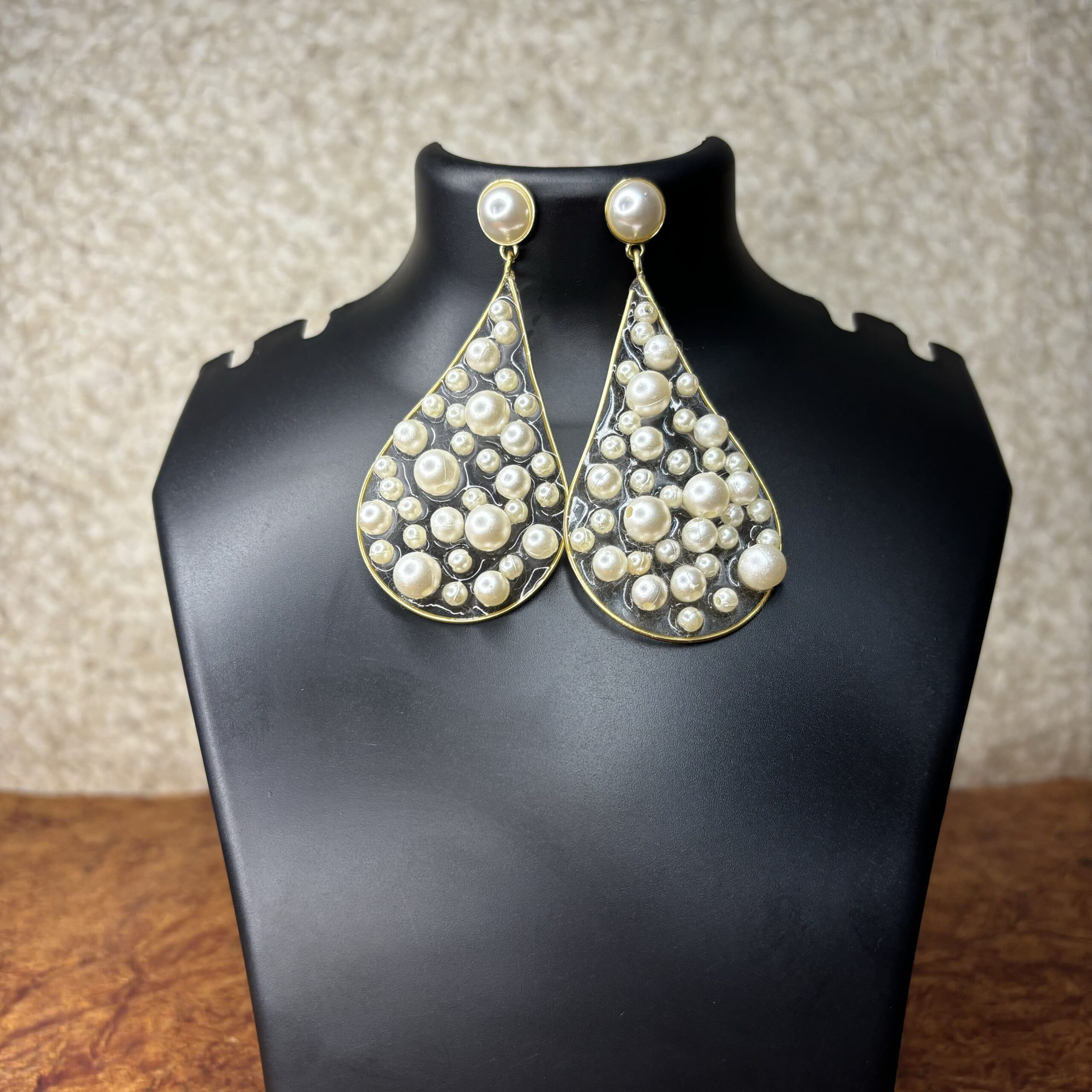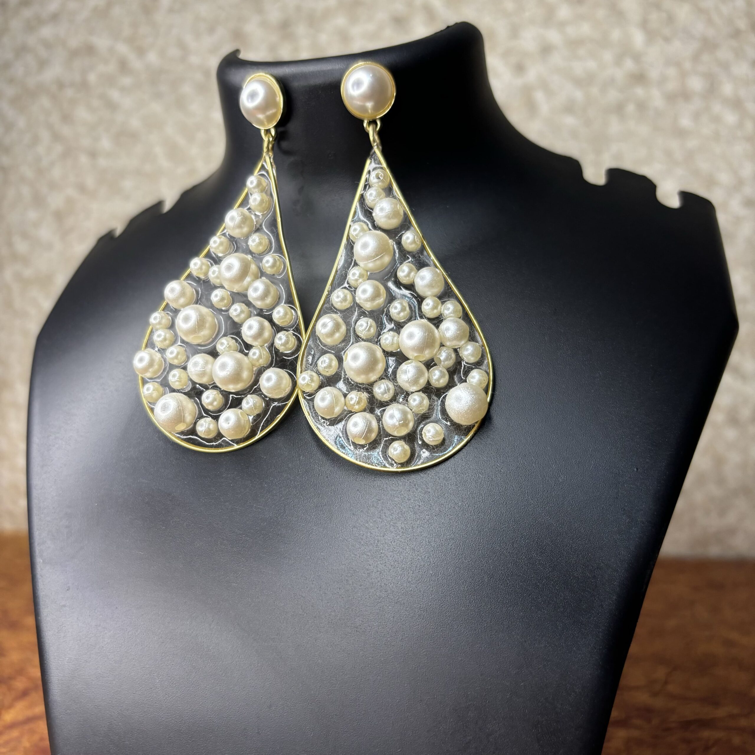 Elevate your elegance with our white resin and pearl dangle earrings, intricately crafted in a graceful drop shape and embellished with delicate pearls. These handmade earrings exude modern sophistication with a touch of timeless charm. The smooth resin surface contrasts beautifully with the shimmering pearls, making them the perfect accessory for both formal occasions and everyday wear.