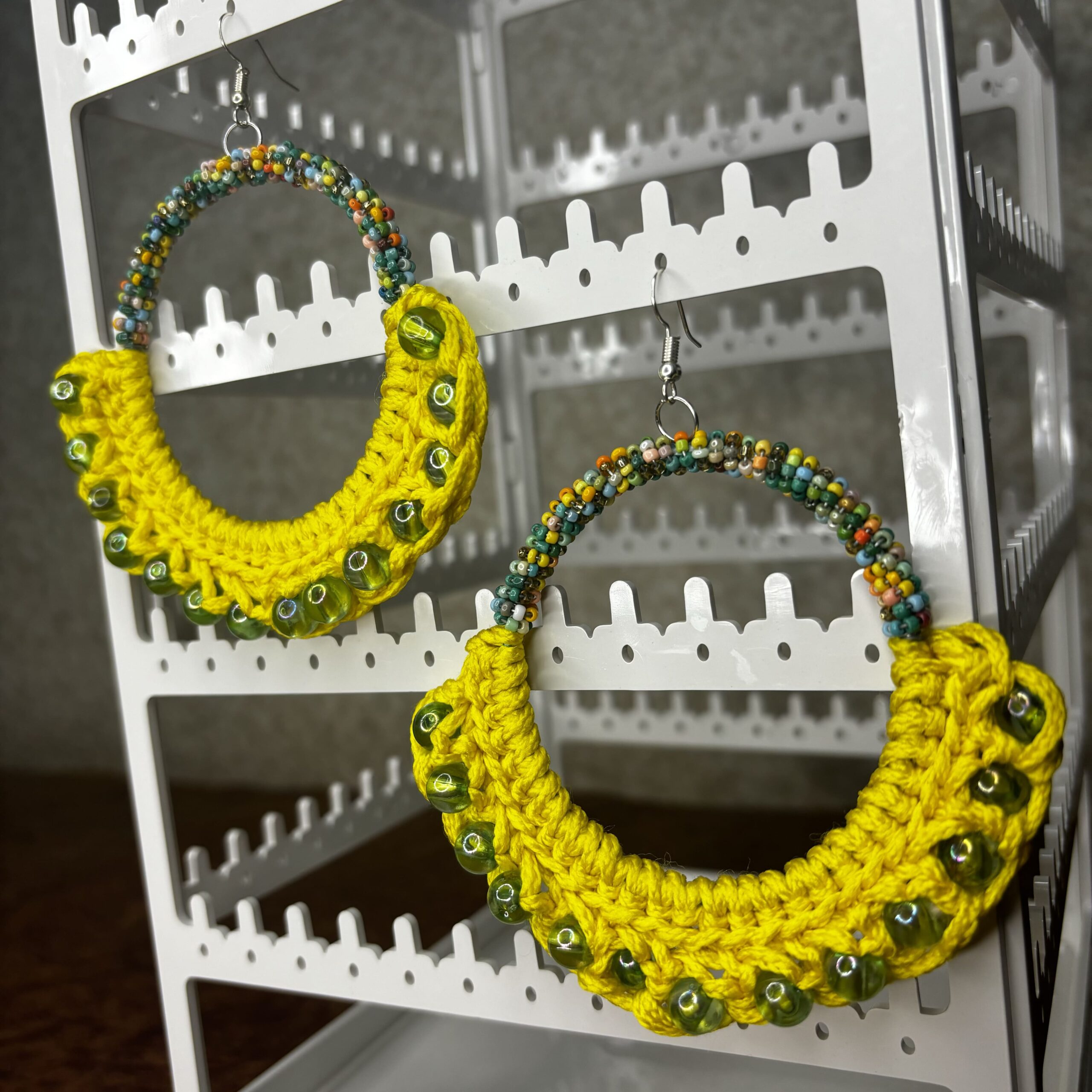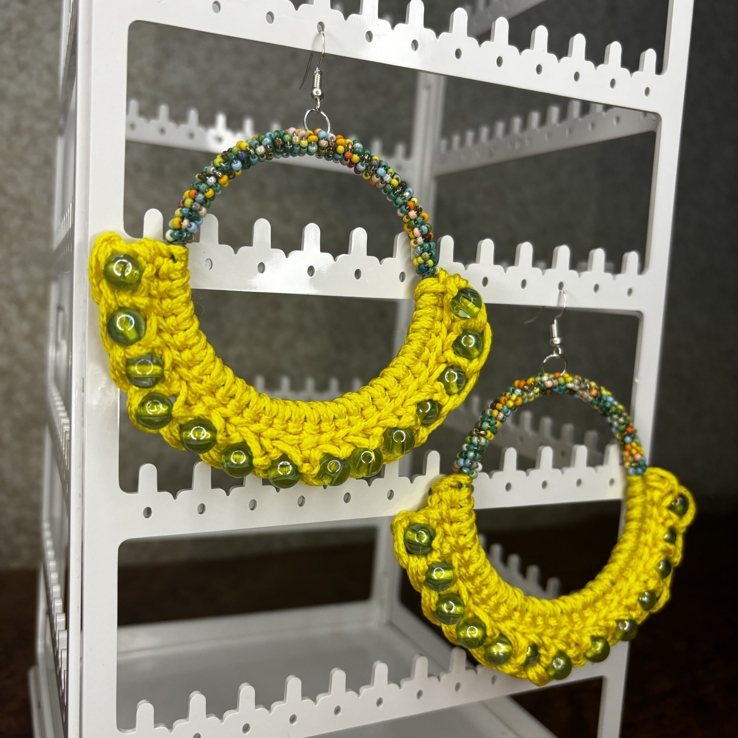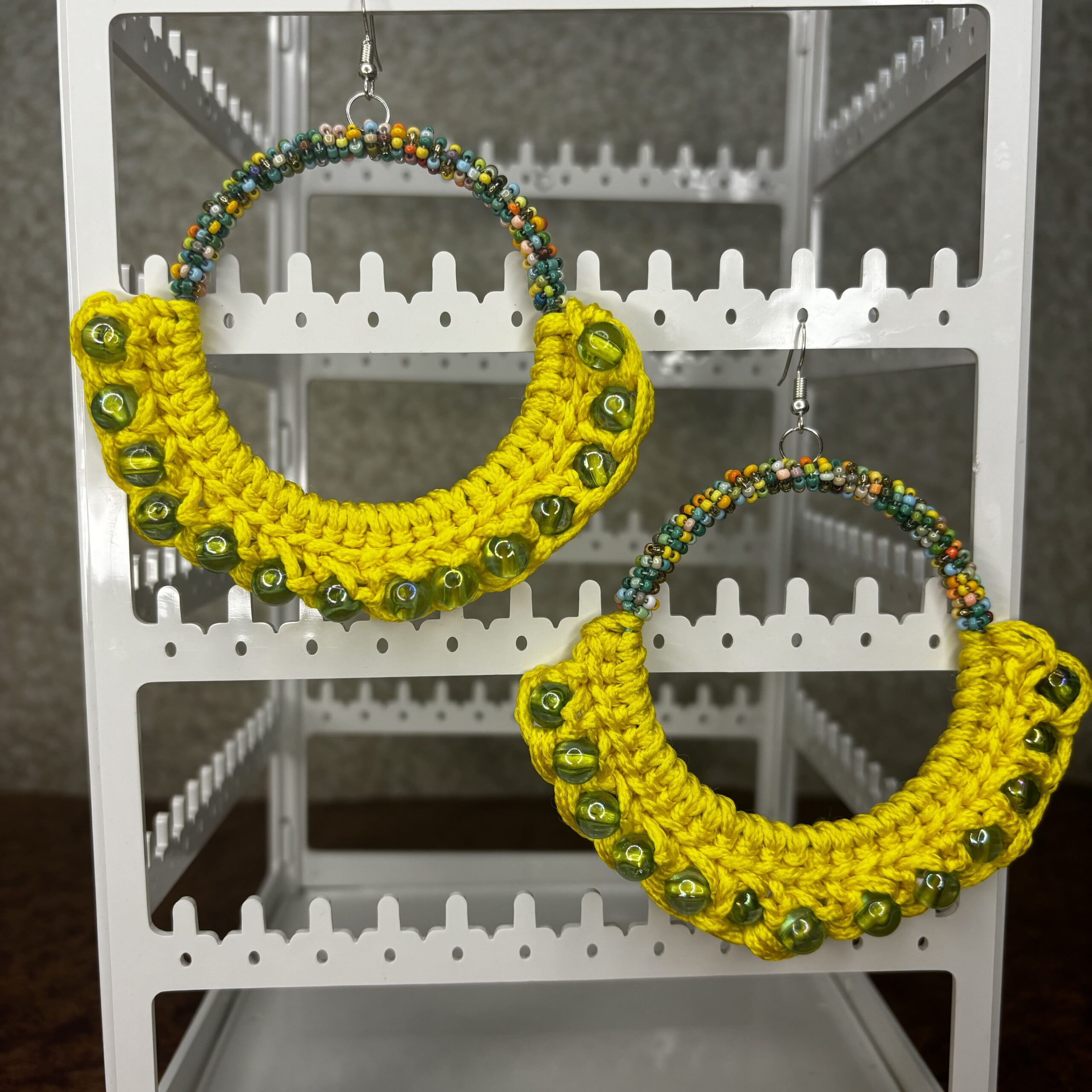 Summer Yellow Crochet Hoop Earrings